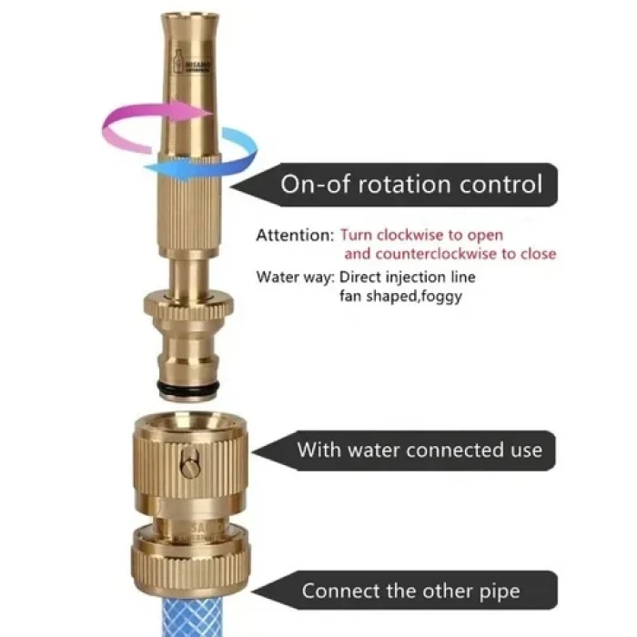 একটি পিতলের অগ্রভাগ আপনাকে কাজটি শেষ করতে সাহায্য করতে পারে, আপনার সংবেদনশীল উদ্ভিদের জন্য একটি নরম কুয়াশা বা বাইরের পৃষ্ঠগুলি পরিষ্কার করার জন্য একটি শক্তিশালী জেটের প্রয়োজন হোক না কেন। পিতলের বাগানের পায়ের পাতার মোজাবিশেষ জন্য স্প্রে অগ্রভাগ পরিচালনা করা খুব সহজ।